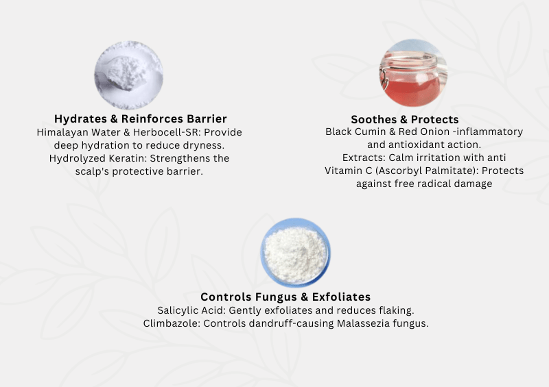 Benefits:-Rapid relief from itch and irritation. Restores hydration and scalp balance. Reduces flaking and dryness.